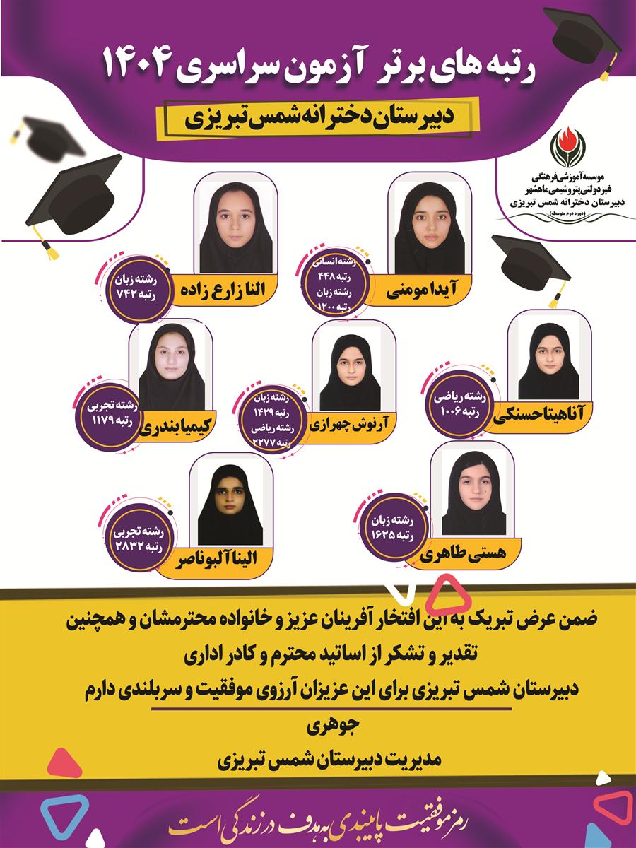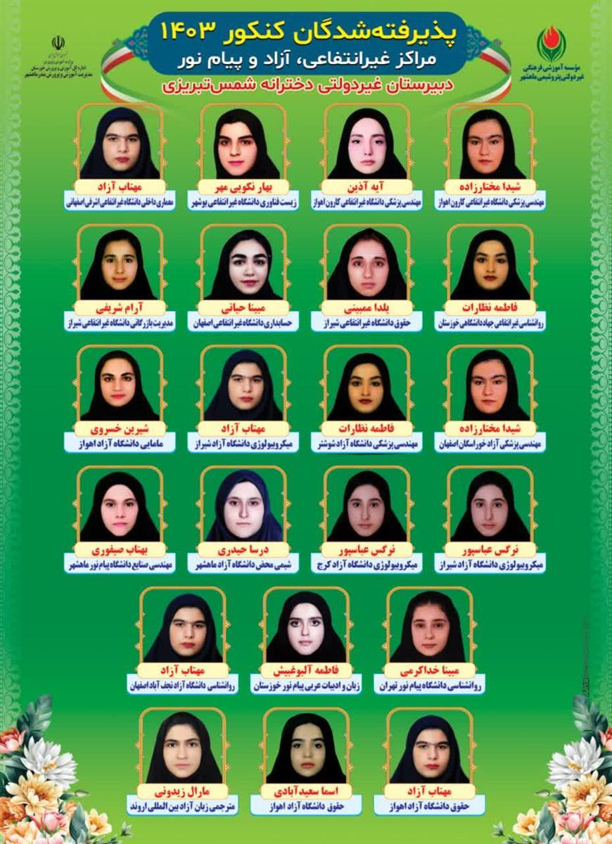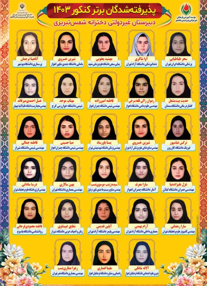 قبولی های کنکور شمس تبریزی سال تحصیلی1403-1402