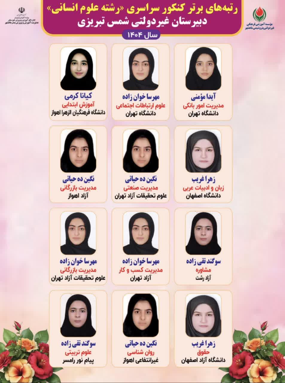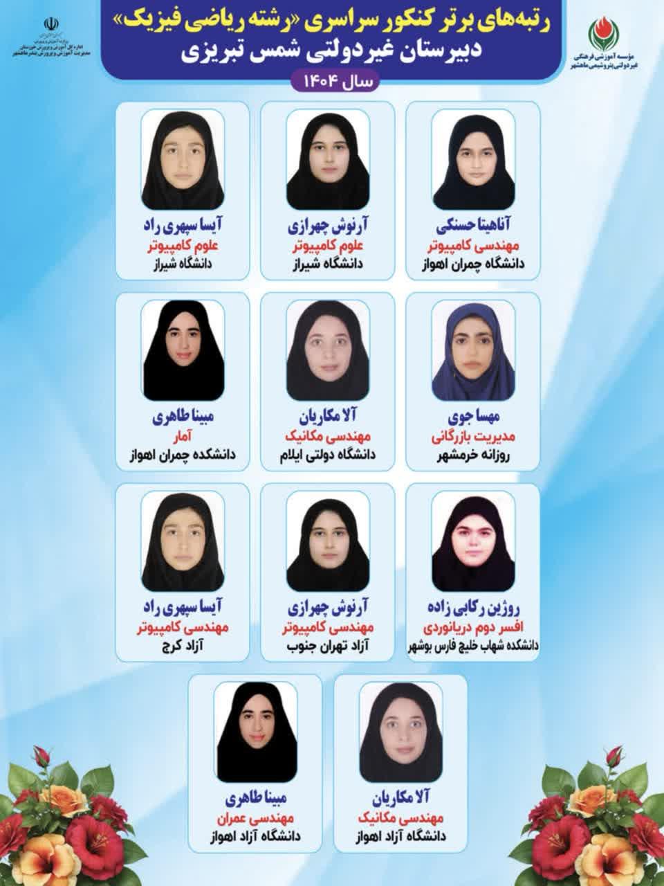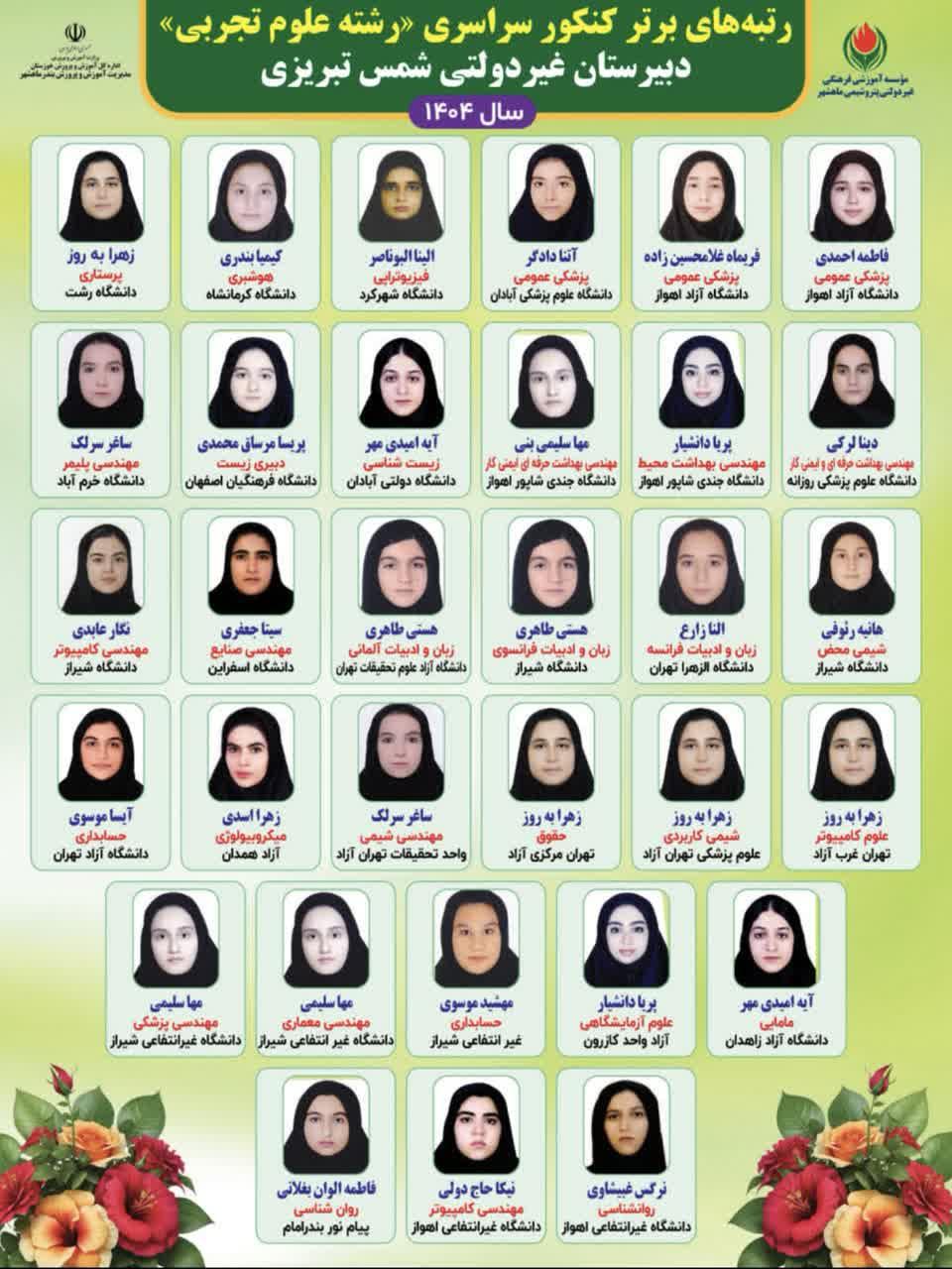 قبولی های کنکور شمس تبریزی سال تحصیلی1403-1402