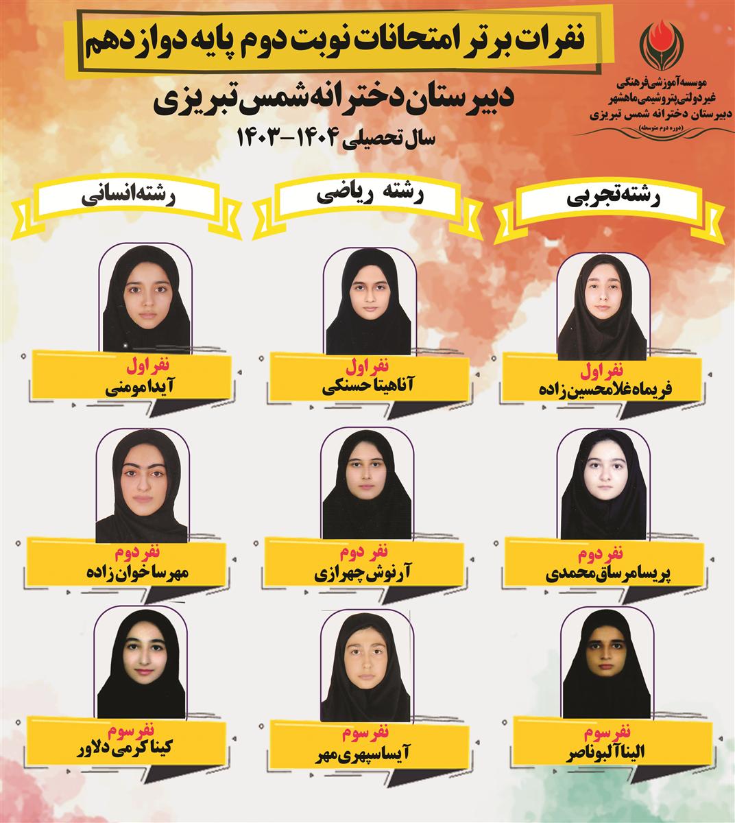 نفرات برتر پایه دوازدهم سال تحصیلی 1400-1399