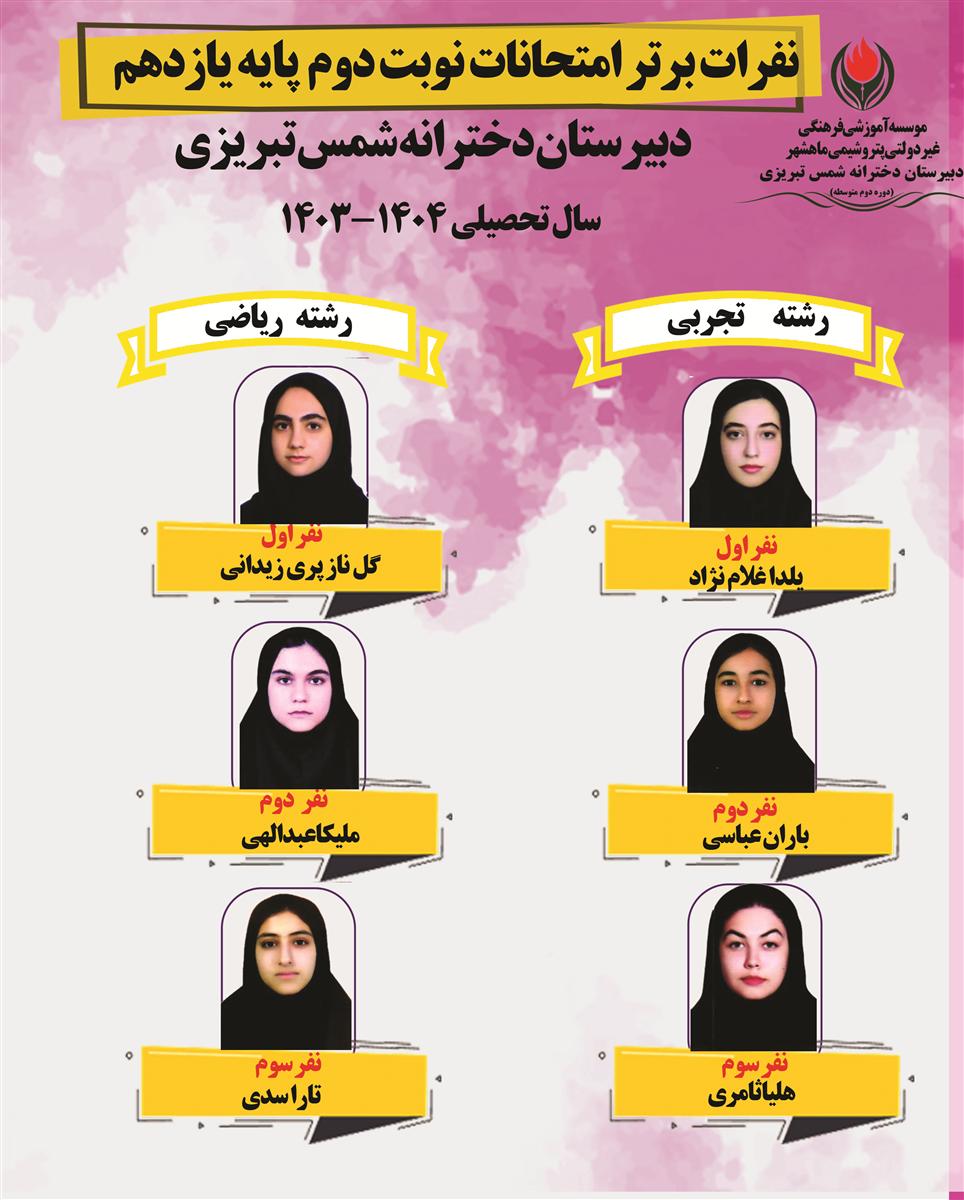 نفرات برتر پایه یازدهم سال تحصیلی 1400-1399